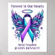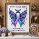Symbolism: Features a stunning illustration of angel wings surrounding the signature Purple and Teal awareness ribbon, accented with delicate butterflies and a halo.