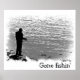 Vamos se afasta de tudo e vai pescar! Personalize ou retire facilmente o texto deste poster, que apresenta uma imagem negra e branca de um pescador solitário em pé no lago Seneca, em Genebra, Nova Iorque. O texto diz: "Foi pescar"