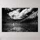 Foto branca e negra de um homem pescando em um lago montanhoso de Montana. Copyright (c) 2017 Karin Hildebrand Lau