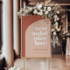 Estamos tão contentes que esteja aqui com a placa de casamento: uma simples poster para dar as boas-vindas aos seus convidados. Minimalista, porém impressionante: adote este design tipográfico ligeiramente retrorreflector para a sua papelaria de casamento, com um design de arco moderno e terracotta e cores laranja queimadas. Texto, cores e fundo totalmente personalizáveis.