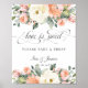 Poster Pêssego Marfim Rosa Floral Amor é Doce Pegue um La