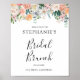 Cartaz Elegante de Brunch de Noiva com Florais Botânicos. Sinal de boas-vindas personalizável para brunch de noiva com guirlanda de aquarela de flores rosa e pêssego com folhagens e acentos de verde. Fácil de personalizar. Compre o seu hoje!
