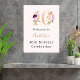 Um fundo cor de pêssego. Decorado com números de foral em ouro falso e rosa. Personalize e adicione um nome e uma idade.