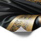 Um gato negro real, enfeitado em ouro e vestido com o traje de um antigo faraó egípcio, espanta com um ar de mistério e sabedoria. Este retrato digital captura a majestade do felino e a opulência da corte faraó.