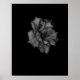 Foto em preto e branco impressionante de uma flor adornada com colírios de orvalho, dramaticamente iluminada contra fundo preto profundo. A imagem enfatiza as intrincadas texturas e formas das pétalas, destacando o contraste entre as delicadas gotículas de água e as superfícies leves de pétalas. O humor geral evoca um senso de beleza silenciosa e mistério, como se a flor estivesse emergindo das sombras.