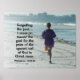 Uma bela poster de citação inspiradora retrata uma corrida feminina na praia e mostra a Bíblia Verse Philippians 3:13-14, "Esquecendo o passado... Eu pressiono em direção ao objetivo do prêmio do chamado ascendente de Deus em Jesus Cristo." *