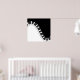 A curving black and white piano keyboard divides black from white in this whimsical graphic design that is sure to delight the musician.