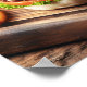 Libere os sabores ousados do Rio com esse poderoso picanha Burger brasileiro. Um pedaço de carne picanha de enfumaçado, grelhado à perfeição, é colocado com queijo cremoso catupira, cebolas doces caramelizadas e bacon crocante. Todos empilhados em um pão de brioche. Uma pequena bandeira brasileira adiciona um toque festivo, enquanto um lado de batatas fritas crocantes repousa sobre uma rústica placa de madeira, completando a obra-prima culinária brasileira.