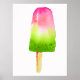Design de bloco de gelo de sorvete com sabor a framboesa, de cor branca, a partir da ilustração de cor aquosa original. Sumério e legal. Cores vibrantes do sabor a bagas - rosa, creme e verde. Yum!
