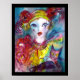 Pintura aquosa colorida, vibrante e branca em cores vermelho vivo, amarelo, azul, branco, púrpura inspirada no Carnaval de Veneza e Commedia dell'Arte.
