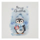 Uma ilustração encantadora de inverno de um adorável pinguim vestindo um chapéu e cachecol listrados, trazendo uma vibração acolhedora e festiva. Os flocos de neve suaves e tons azuis suaves no fundo criam uma atmosfera mágica de inverno. Perfeito para cartões de Natal, posters, adesivos e artesanatos sazonais!