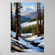 Embarque a beleza derrubada do inverno num vale adornada com pinheiros orgulhosos, um contraste impressionante com a neve branca pristina que tapete a terra. Montanhas majestosas ficam à distância, guardiães desta paisagem serena, convidando-os a explorar a tranquilidade da estação.