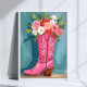 Poster Pink Cowgirl Boot Flower Bouquet Watercolor
