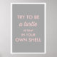 Poster de motivação rosa e cinza com tipografia retrô. Seja uma tartaruga à vontade na sua própria concha. Itens semelhantes podem ser encontrados em minha loja.