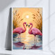 Poster Pink Flamingos Sunset Animal Painting