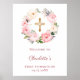 Poster Pink floral wreath First Communion welcome