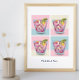Esta imagem gerada por IA & software gráfico é uma ilustração colorida e artística de um coquetel cor-de-rosa e tônico, apresentado em um layout ousado e moderno de quatro painéis. Cada quadrante apresenta uma variação única da mesma ilustração da bebida, oferecendo turnos divertidos no bloqueio de cores e combinações de fundo para maior interesse visual. A bebida é representada em um vidro transparente cheio de cubos de gelo de cor suave, ao estilo mosaico, pintados com blocos abstrato de cor rosa, vermelha, amarela, branca, azul e roxo. Um limão de cunha amassado na borda, pintado em tons estilizados verdes e amarelos. Os fundos alternam entre rosa, creme e azul claro, dividem-se horizontalmente em cada quadrante para refletir e complementar a paleta de cores vibrantes da bebida. Abaixo do trabalho de arte, a frase "Gin Rosa & Tônico" é escrita elegantemente em uma fonte azul-marinho cursiva, amarrando o tema juntamente com uma diversão e na moda florescem. Este design vivo é perfeito para decoração de cozinha, bares caseiros ou amantes de cocktail que apreciam uma estética artística ousada.