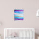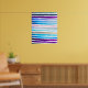 Mão branca pintada de listras d'água design em legal cores do arco-íris de blues, roxas e cinzentos. Design moderno, bonito e colorido