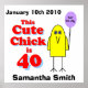 Este pintinho giro tem 40! Poster personalizado. Uma bela imagem de desenho animado de pintinho segurando um balão que diz 'YAY, Go Me'. O texto diz: Este pintinho bonito é 40. Totalmente personalizável. Substitua a data e o nome pelo texto. presente de excelente para aqueles 40 anos!