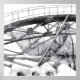 Desenho de lápis.Artista de Zolotareva. Pêncilart de tendências modernas monocromáticas brancas pretas. Há uma bela ponte sobre o lago.
