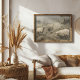Poster pintura a óleo de grupo de pastoreio de ovinos num