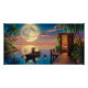 Esta pintura a óleo espetacular transporta-nos para um paraíso tropical sereno, com uma lua massiva a lançar um ouro a brilhar sobre águas calmas. Uma figura misteriosa lida um barco em direção ao espectador, enquanto palmeiras flutuam na brisa. Um píer de madeira e uma sala convidativa com iluminação a quente acrescentam à beleza cinematográfica e tranquila da cena.