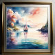 Pintura em aquarela de Landscape Rural Sailboat no lago A proporção é de 1:1. Ele foi projetado para ser impresso como 20"x20" 16"x16" 12"x12"