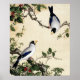Poster Pintura Artística de Pássaros Antigos em Galho de