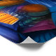 Esta trabalho de arte criada por IA apresenta uma coruja azul branca com manchas laranja e grandes olhos redondos bonitos.