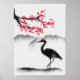Arte tradicional japonesa pintada à mão com Sakura e Heron