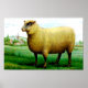 Uma pintura tênue de ovelha ou borrego num campo ou pastagem de erva verde macia.
