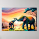 Uma pintura elefante captura a ligação entre mãe e criança na paisagem vibrante da Índia. A cena alegre reflete uma vida feliz no reino animal, onde os elefantes majestosos caminham livremente. Esta trabalho de arte exumenta um charme caprichoso enquanto celebra a beleza da vida selvagem e as relações de nutrição que prosperam na natureza. Pintura de arte para a decoração. Você pode comprar com papel de quadro e impressão de arte. Tamanho original da imagem de arquivo: 40'x27' polegadas (300 dpi).