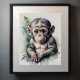 Pintura em Aquarela de Chimpanzé Bebê Deixa Berçário A proporção é de 5:4. Foi projetado para ser impresso como 5"×4", 10"x8", 20"×16", 30"x24"