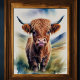 Pintura em Aquarela de Uma Vaca do Planalto. A proporção largura/altura é 5:4. Ele foi projetado para ser impresso como 5"×4", 10"x8", 20"×16", 30"x24"