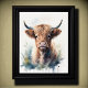 Pintura em Aquarela de Uma Vaca do Planalto. A proporção largura/altura é 5:4. Ele foi projetado para ser impresso como 5"×4", 10"x8", 20"×16", 30"x24"