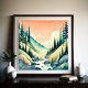 Pintura em Aquarela da Paisagem Montanha. A proporção largura/altura é 1:1. Ele foi projetado para ser impresso como 20"x20" 16"x16" 12"x12"
