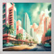 Pintura aquosa da Arte Deco Miami A proporção é 1:1. Ele foi projetado para ser impresso como 20"x20" 16"x16" 12"x12"