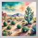 Pintura por Aquarela do Cactus Paisagista do Deserto Rural. A proporção largura/altura é 1:1. Ele foi projetado para ser impresso como 20"x20" 16"x16" 12"x12"