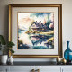 Pintura em Aquarela de Landscape Lake House Rural. A proporção largura/altura é 1:1. Ele foi projetado para ser impresso como 20"x20" 16"x16" 12"x12"