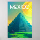 México: pirâmide prefeita trvel poster vintage art, México