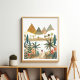 Transforme o seu espaço com este poster de arte da paisagem do deserto cativante. A cena evocativa apresenta pirâmides antigas, um rio sinuoso, palmeiras exuberantes e duas figuras rolando ao longo de um caminho. Isto convida os espectadores a fazerem uma viagem de imaginação. Uma mistura de tons quentes e legal cria uma composição visualmente atraente.