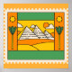 Pirâmides do Egito Carimbo Poster em verde, amarelo e marrom