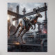 Dynamic and energetic, this piston-powered kangaroo design shows a mechanical marsupial mid-leap with reinforced steel plating, hydraulic hind legs, exposed pistons, glowing eyes, and a mesh-metal pouch. Bounding across a vast pipeline network of tanks, valves, catwalks, steam vents, and drifting sparks, the scene bursts with motion and industrial power. Perfect for gyms, offices, studios, and modern interiors. A bold choice for fans of engineering art, Australian wildlife, and futuristic mechanical animals.