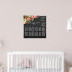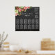 PixDezines quadro-negro caprichoso acentuado com ilustrações de Pierre Redoute de rosas cor-de-rosa, anêmonas e clementina. O fundo é sobreposto com bolinhas pretas ajustáveis.