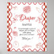 Torne o seu chá de fraldas de entrega especial da Pizza ainda mais divertido com este adorável cartaz de rifa fralda! Projetado com um tema de pizza divertida, este cartaz convida os convidados a participar do seu jogo de rifa de fralda em estilo. Apresentando gráficos de pizza giros, cores vermelhas e brancas quentes e letras ousadas no estilo de entrega, é a adição perfeita à decoração do chá de fraldas com o tema de pizza.