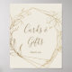 Este cartão geométrico de creme floral dourado e sinal de presentes é perfeito para um casamento elegante ou chá de noiva. O design moderno boho apresenta um arranjo caprichoso de flores desenhadas à mão com folha de ouro falso, folhas e botânicos em um fundo de creme. A linha de texto na parte inferior do sinal pode ser personalizada com a data, os nomes da noiva e do noivo, ou uma mensagem curta como "Obrigado". Este sinal pode ser usado para um casamento ou qualquer evento ou festa.