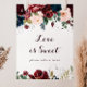 Esta placa de amor de outono ilustrada em aquarela é doce e perfeita para um casamento simples ou chá de noiva. O design apresenta rosas e peônias em azul naval, burgundy, vermelho e rosa desenhadas à mão em aquarela com folhas verdes elegantes, inspirando a beleza outonal idílica e colorida.