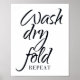 Poster Placa de banheiro Lavar Secar Dobrar Repetir