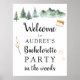 Dê boas-vindas aos convidados para a sua festa de despedida de solteira com esta divertida placa de boas-vindas com árvores em aquarela, montanhas e equipamentos para fazer s'mores. Adicione o nome da convidada de honra e personalize o texto de boas-vindas usando os campos fornecidos.