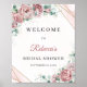 Moldura dourada com eucalipto floral rosado Sinal de Boas-Vindas para festa de Chá de Noiva,